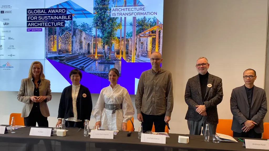 UNESCO himayesinde, Saint-Gobain resmi ortaklığında ve Uluslararası Mimarlar Birliği (UIA) desteğiyle 19. kez düzenlenen ”Küresel Sürdürülebilir Mimarlık Ödülü (Global Award for Sustainable Architecture) töreni ve bu yılın teması “Mimarlık Dönüşümdür” başlıklı sempozyum 15 Nisan’da İstanbul, Mimar Sinan Güzel Sanatlar Üniversitesi’nde (MSGSÜ) gerçekleşti.