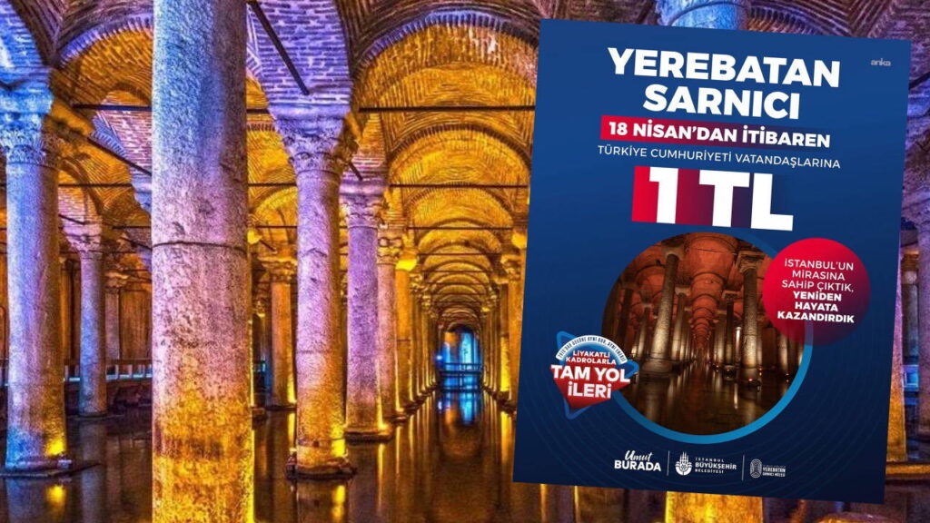 İstanbul Büyükşehir Belediye (İBB) Başkanvekili Nuri Aslan, İBB Meclisi’nde yaptığı faaliyet raporu sunumunda; İBB Miras ile gerçekleştirilen restorasyon devrimini rakamlarla anlatırken, Yerebatan Sarnıcı’nın Vakıflar Genel Müdürlüğü’ne devredilmesine tepki gösterdi. Aslan, “Biz onardık, biz sahip çıktık. Şimdi 15 günde boşaltın diyorlar. Bu hukuksuzluğa karşı bugünden itibaren Türk vatandaşlarına Yerebatan Sarnıcı ziyaretini sadece 1 TL yapıyoruz” dedi.