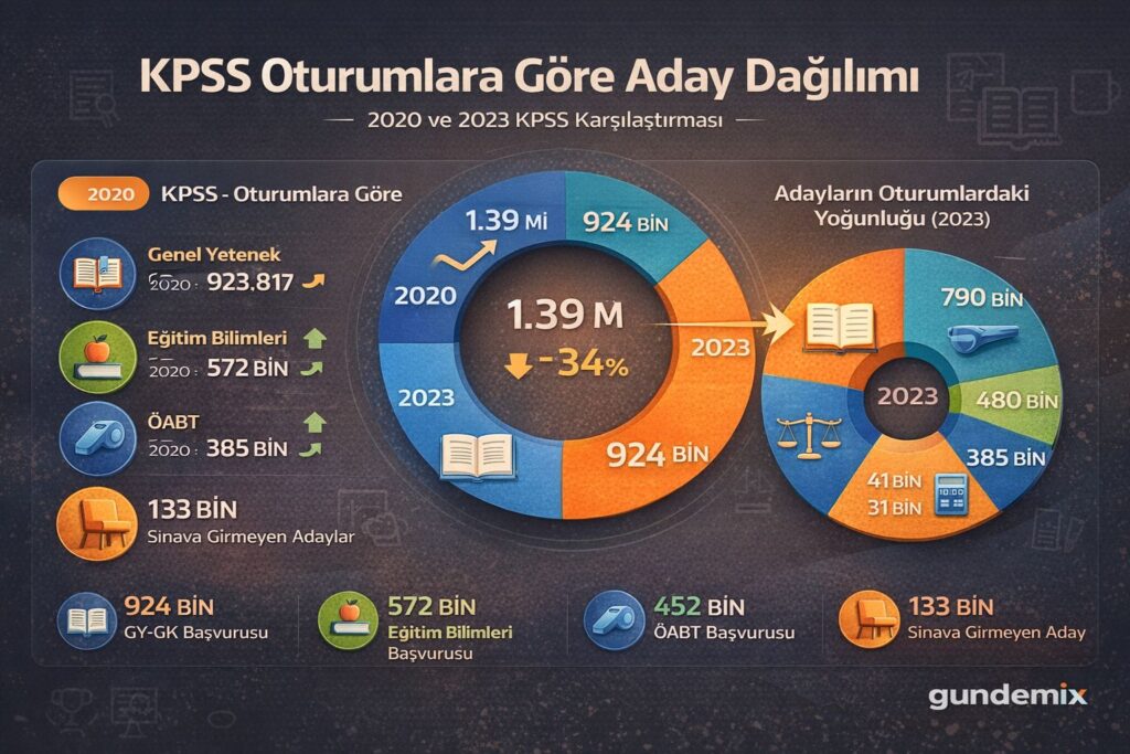 ÖSYM’nin yayımladığı 2020 ve 2023 KPSS verilerine göre adayların oturum tercihleri değişiyor. Genel Yetenek–Genel Kültür oturumunda büyük düşüş yaşanırken, Eğitim Bilimleri ve ÖABT oturumlarında artış dikkat çekti.